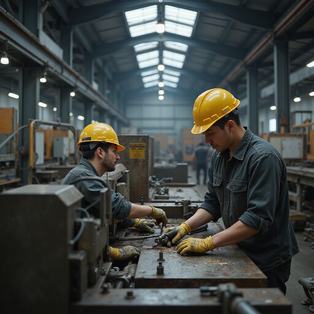 Reliable industrial workers trained for manufacturing, assembly lines, and heavy equipment operation.
